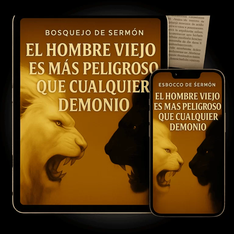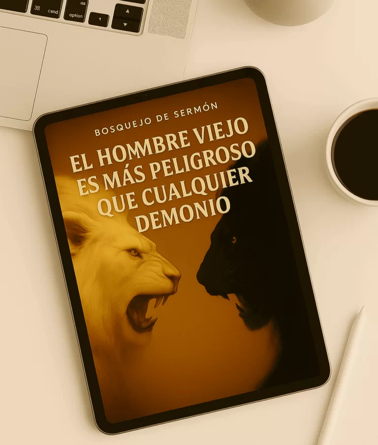 Tendrás acceso al poderoso bosquejo “El Hombre Viejo es Más Peligroso que Cualquier Demonio”, con revelaciones espirituales profundas, un lenguaje que confronta y aplicaciones prácticas que te ayudarán a predicar con autoridad, despertar un arrepentimiento genuino y guiar vidas hacia una verdadera liberación interior.